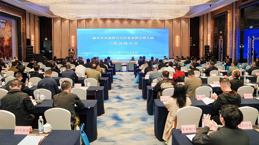 何丽明会长在丽水市企业联合会企业家协会九届三次会员大会上指出:坚定信心、持续创新、稳健发展